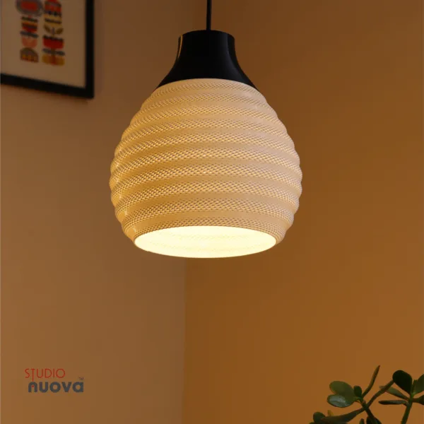 Available in two sizes, Cora adapts seamlessly to a variety of environments. The smaller version is ideal for reading nooks, cozy corners, or as part of a cluster arrangement, while the larger size creates a statement in dining rooms, workspaces, or living areas with higher ceilings.