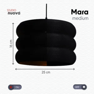 The Mara Lampshade from Studio Nuova is a bold and timeless hanging light that combines sleek contours with a refined black finish. Its versatile design makes it equally suited for modern homes, creative workspaces, or commercial interiors. Whether chosen in its compact or larger form, Mara adds character and elegance to any space.