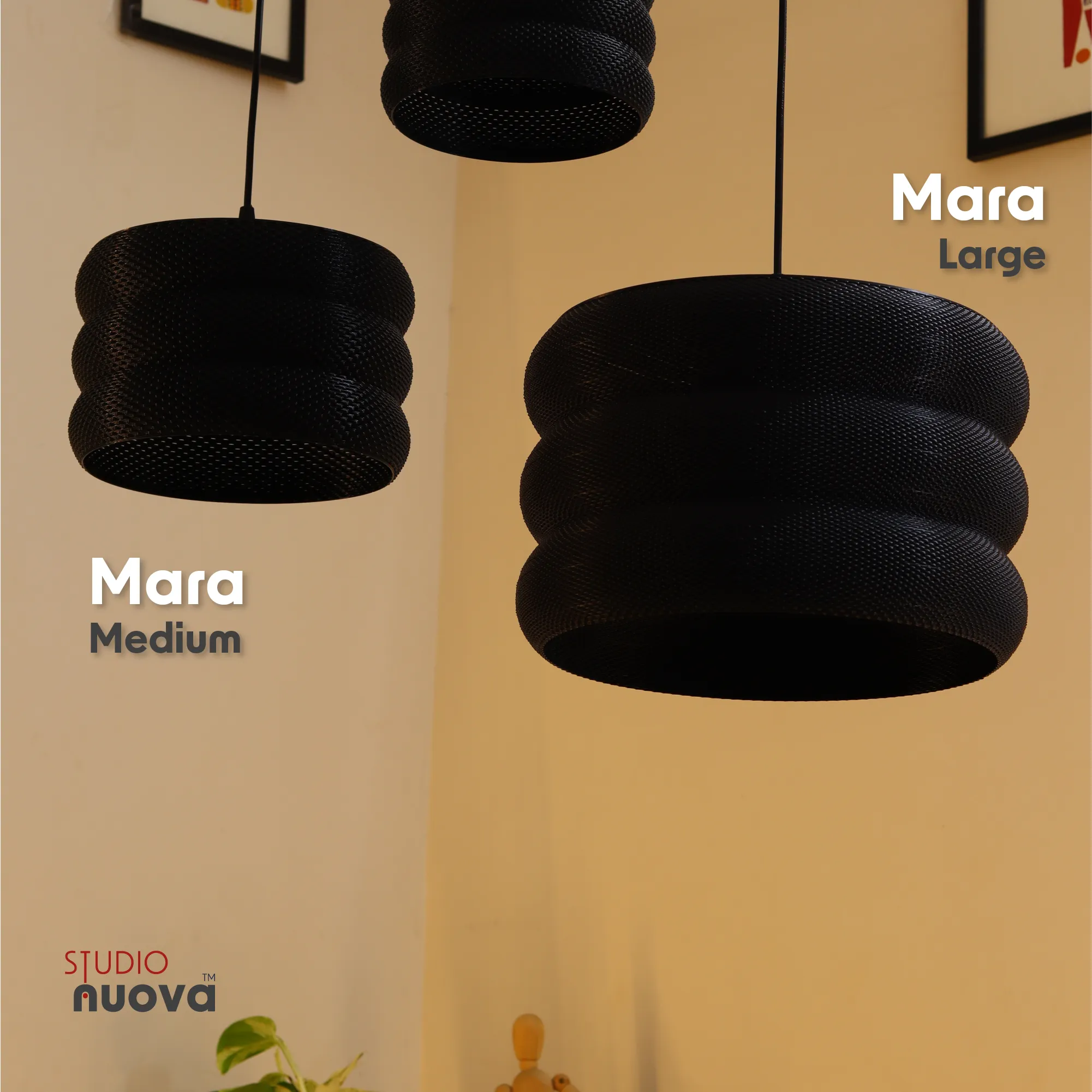 The Mara Lampshade from Studio Nuova is a bold and timeless hanging light that combines sleek contours with a refined black finish. Its versatile design makes it equally suited for modern homes, creative workspaces, or commercial interiors. Whether chosen in its compact or larger form, Mara adds character and elegance to any space.